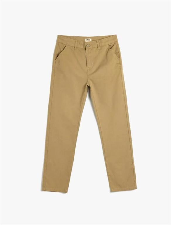 Erkekler için mavi lakost, deve tüyü renginde kargo pantolon şeklinde belirlenmiştir.